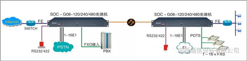 目前在高速公路、交通、電子警察、監控、安防、工業自動化、電力、海關、水利、銀行等領域,視頻圖像、音頻、數據、以太網等光端機已開始普遍大量應用。圖一是光端機的一個典型應用。